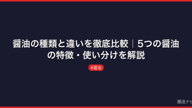 醤油 醤油の種類と違いを徹底比較|5つの醤油の特徴・使い分けを解説 醤油の種類と違いをJAS規格の5分類で徹底比較。濃口・淡口・たまり・再仕込み・白醤油の特徴、塩分濃度、製法、料理との相性を醸造の視点から解説します。 2026.03.15 醤油