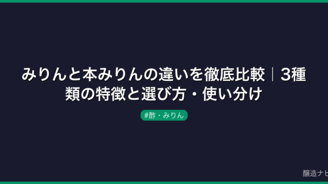 酢・みりん みりんと本みりんの違いを徹底比較|3種類の特徴と選び方・使い分け みりんと本みりんの違いを原料・製法・アルコール度数・価格で徹底比較。みりん風調味料・発酵調味料との違い、料理別の使い分け、醸造家が教える選び方を解説します。 2026.03.15 酢・みりん